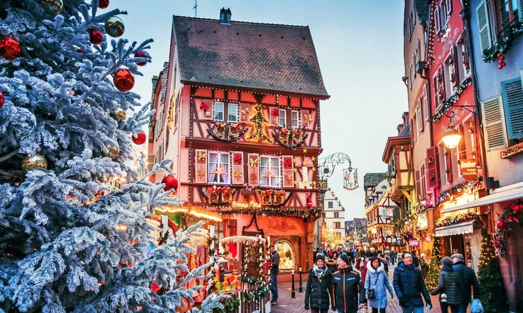 Vào mùa Giáng sinh, vẻ đẹp cổ kính của Colmar càng trở nên quyến rũ hơn. Những ngôi nhà gỗ nhiều màu sắc được trang trí bằng đèn và các ornament Giáng sinh, tạo nên một khung cảnh như bước ra từ truyện cổ tích. Chợ Giáng sinh Colmar là một trong những chợ Giáng sinh nổi tiếng nhất nước Pháp. Với hơn 180 gian hàng được bày trí tại 6 địa điểm khác nhau trong thành phố, chợ Giáng sinh Colmar mang đến không gian lễ hội đậm chất truyền thống. Du khách có thể tìm thấy đủ loại đồ thủ công mỹ nghệ, đồ trang trí Giáng sinh và các món ăn đặc trưng của vùng Alsace.